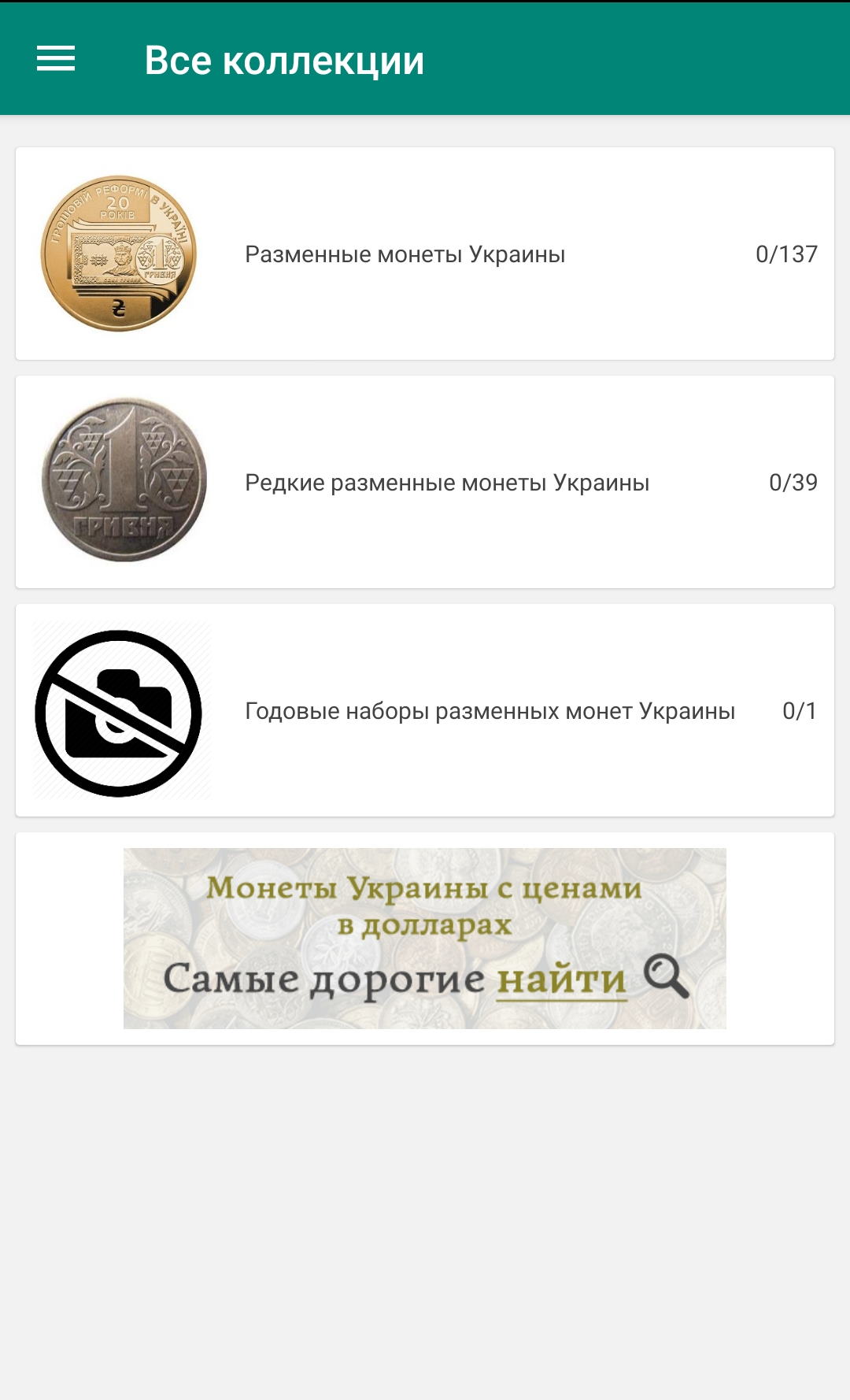Приложение содержит всю информацию о монетах Украины.