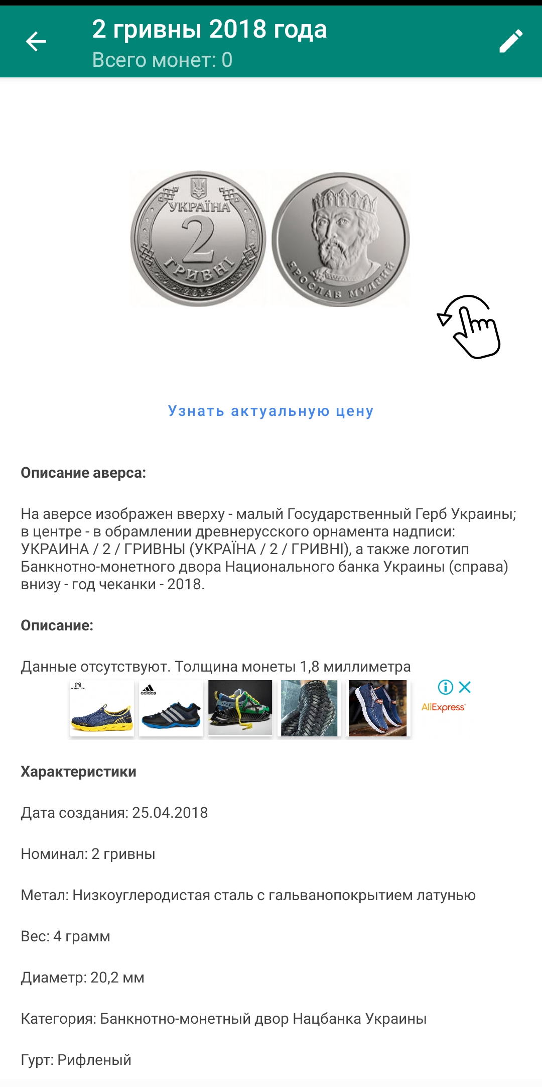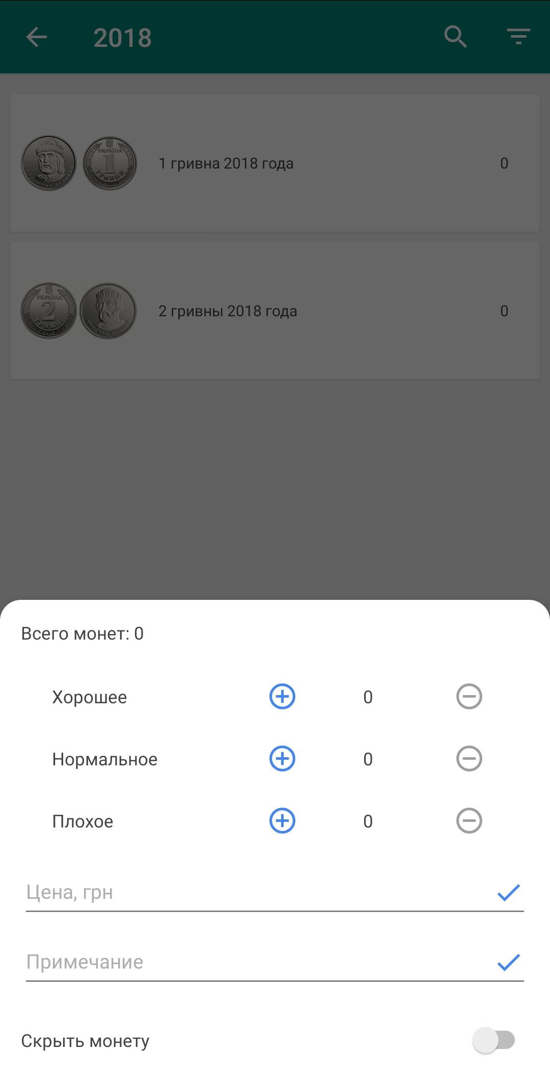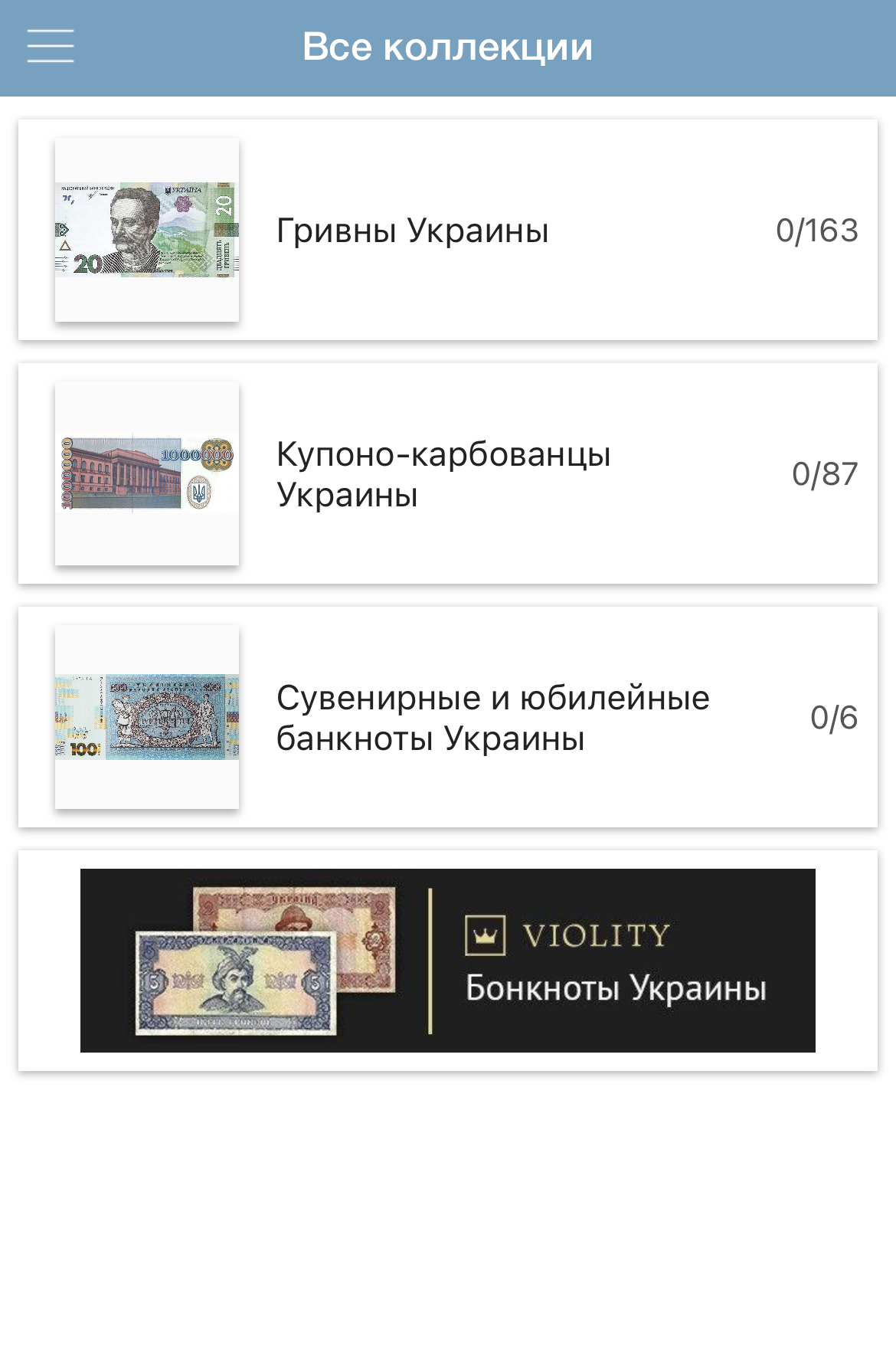 Приложение содержит всю информацию о монетах Украины.
